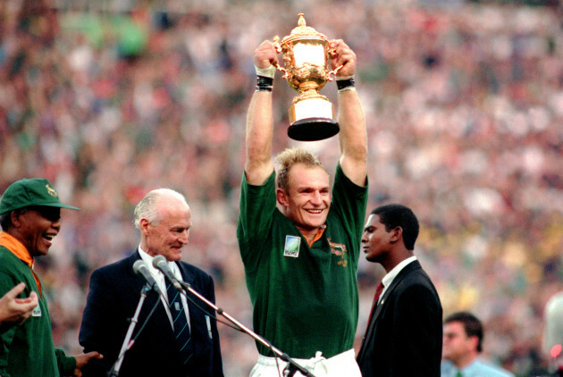 Springbok skipper francois pienaar held aloft the webb ellis cup in the presence of the then sa president nelson james, as a member of the triumphant rugby world cup squad from 1995, will.